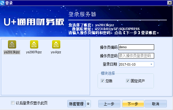 步骤三、登录U+通用财务版,选择体验账套就可以在线体验了